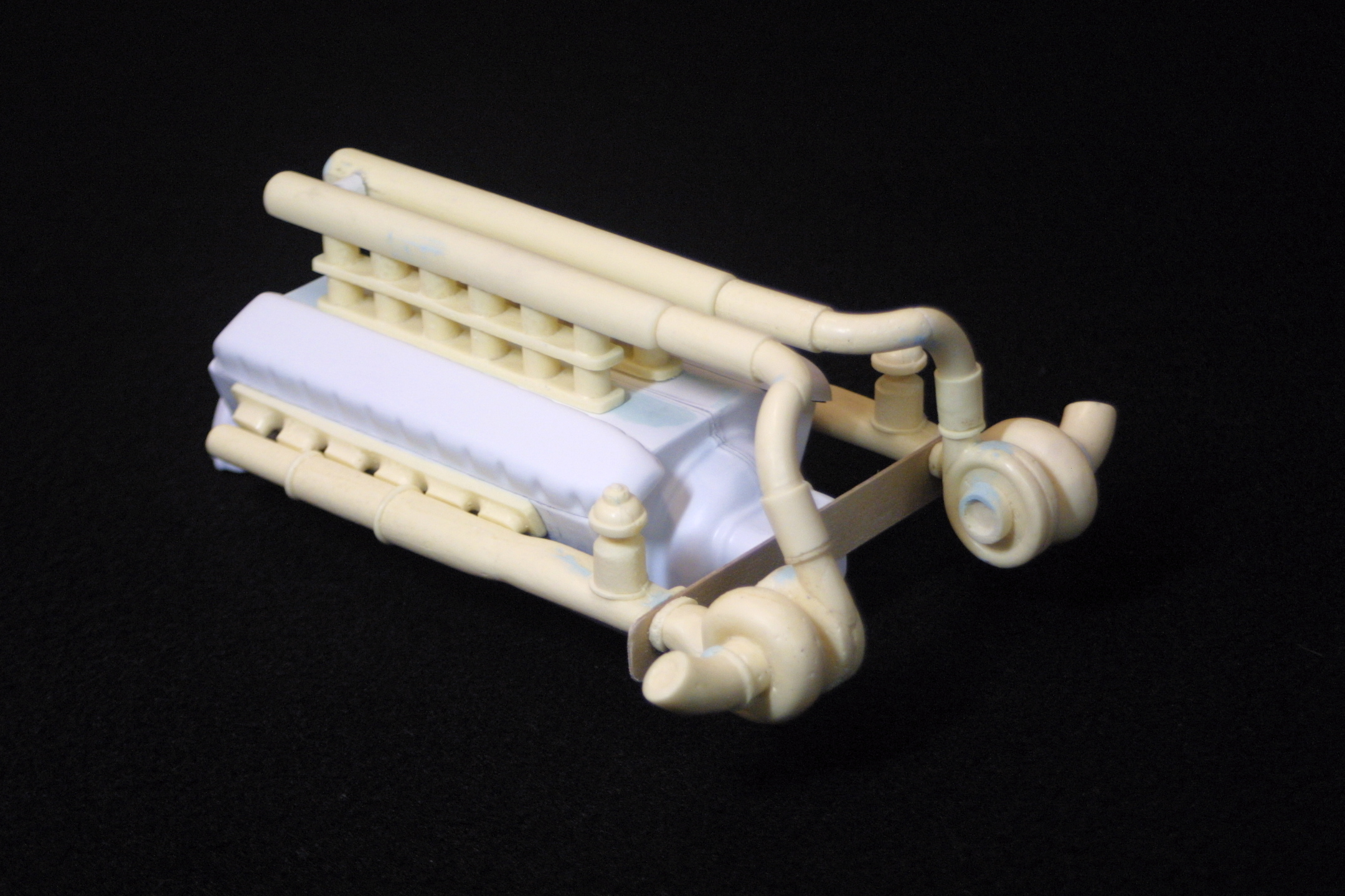 Dummy Turbo Allison Kit with resin stacks, pipes and turbos. $45 ea. ($90 Assembled) A kit of stacks, pipes and turbos can be purchased separately for $30 *The Turbo Allison Kit can be assembled with the turbos in the front (as seen on the above left) or in the rear of the engine (as seen on the above right).
